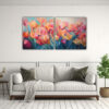 Este cuadro de flores abstractas duraderas en tonos lila, azul marino grisaceo, carmesí, gris, plateado, coral y menta sería perfecto para complementar la decoración de tu sala de estar Colócalo sobre un sofá de color neutro para resaltar sus tonos vibrantes y crear un ambiente moderno y sofisticado También puedes combinarlo con cojines en los mismos colores para lograr una armonía visual ¡Dale vida a tus espacios con la belleza de la naturaleza!