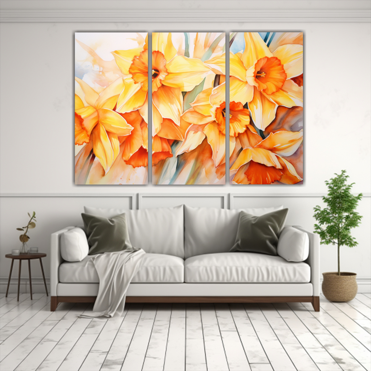 Decora tu espacio con este cuadro abstracto de flores narcisos en colores naranja, ideal para dar un toque de frescura y elegancia Añade un toque de color a tu sala de estar o dormitorio