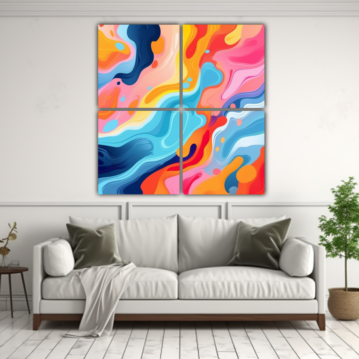 Este cuadro abstracto de fondo líquido y fluido colorido en lienzo brillante es perfecto para decorar tu sala de estar Colócalo sobre una pared lisa y sin adornos para que sea el centro de atención Combina con muebles de tonos neutros, como blancos o grises, para crear un equilibrio elegante La vibrante paleta de colores le dará vida a la habitación y será un punto focal que captará todas las miradas ¡Atrévete a darle un toque de estilo y color a tu hogar con este cuadro exclusivo de DecoCuadros!