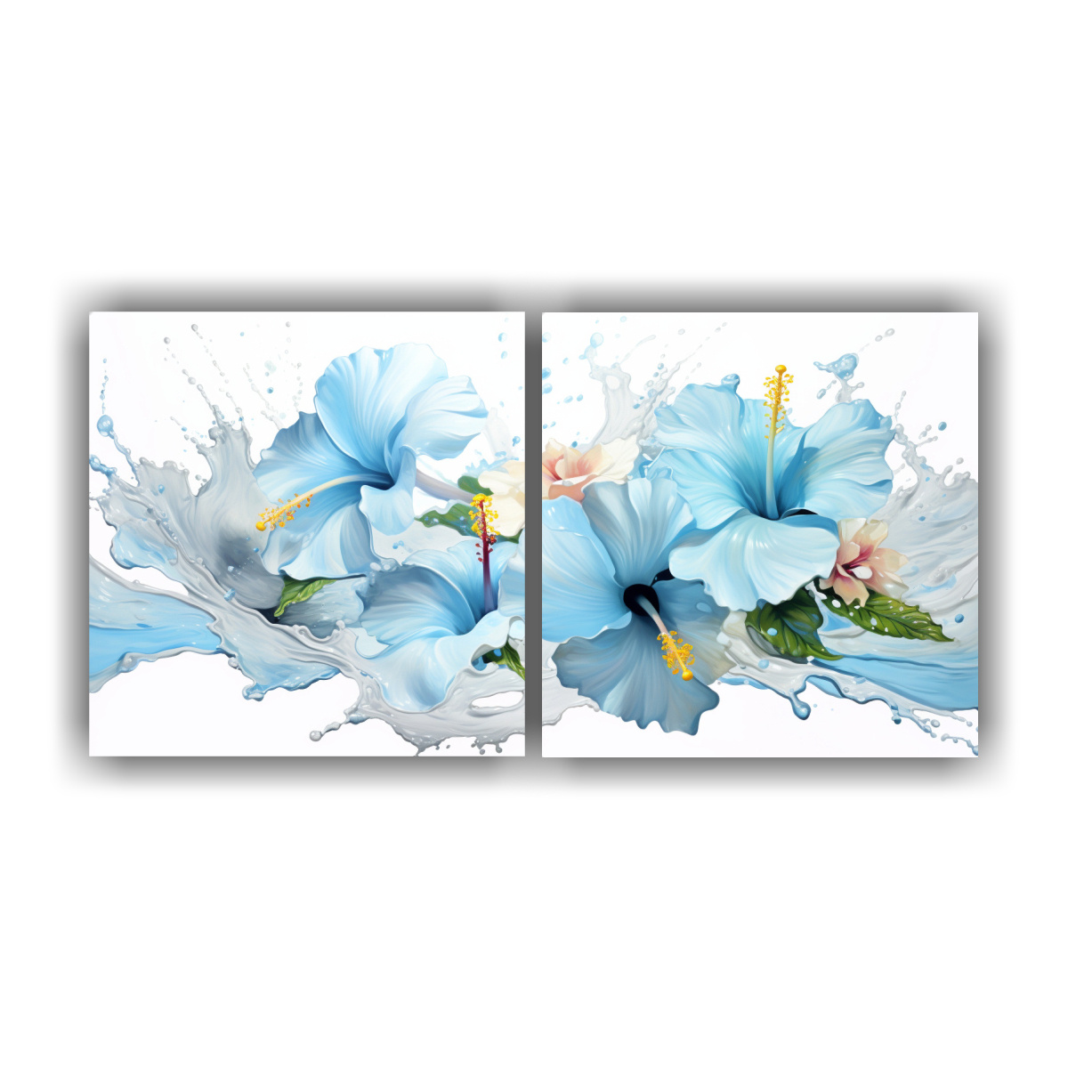Pinturas Abstractas De Hibiscos Blanco Y Turquesa En Bastidor