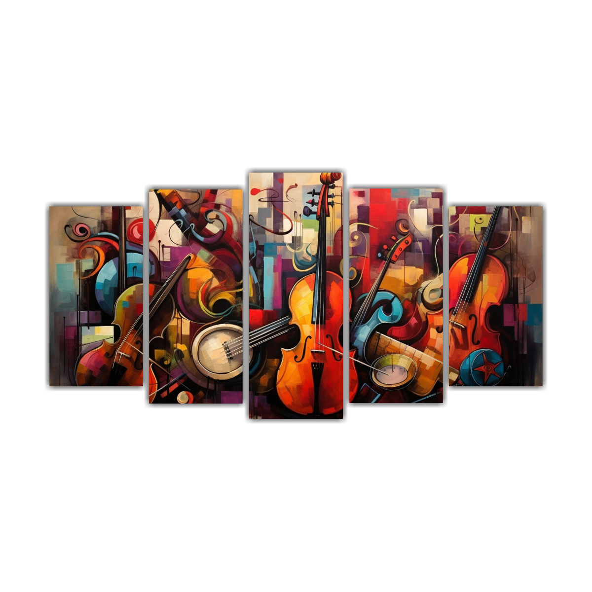 Pinturas Abstractas De Instrumentos Musicales Cinco Cuadros Vintage Minimalistas.
