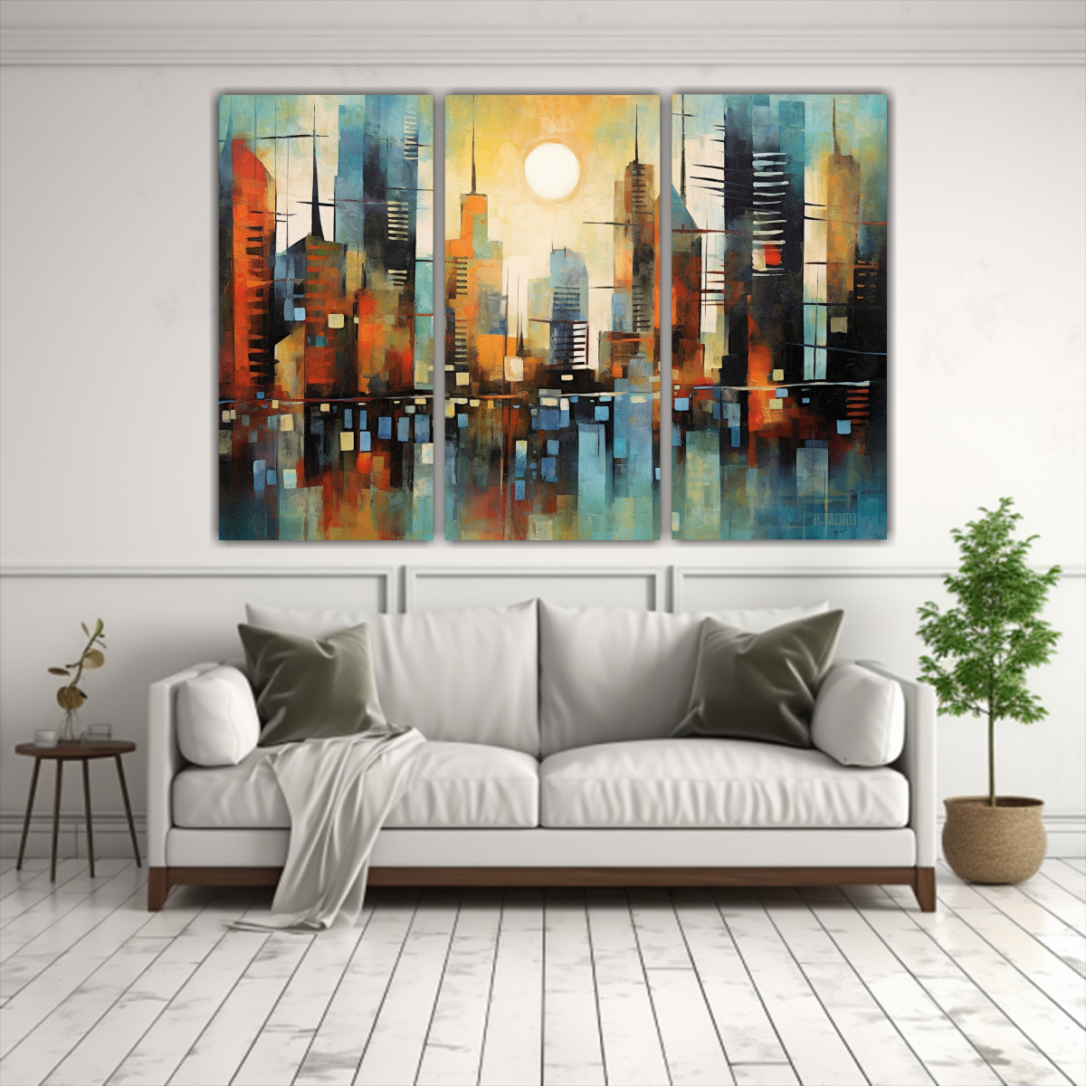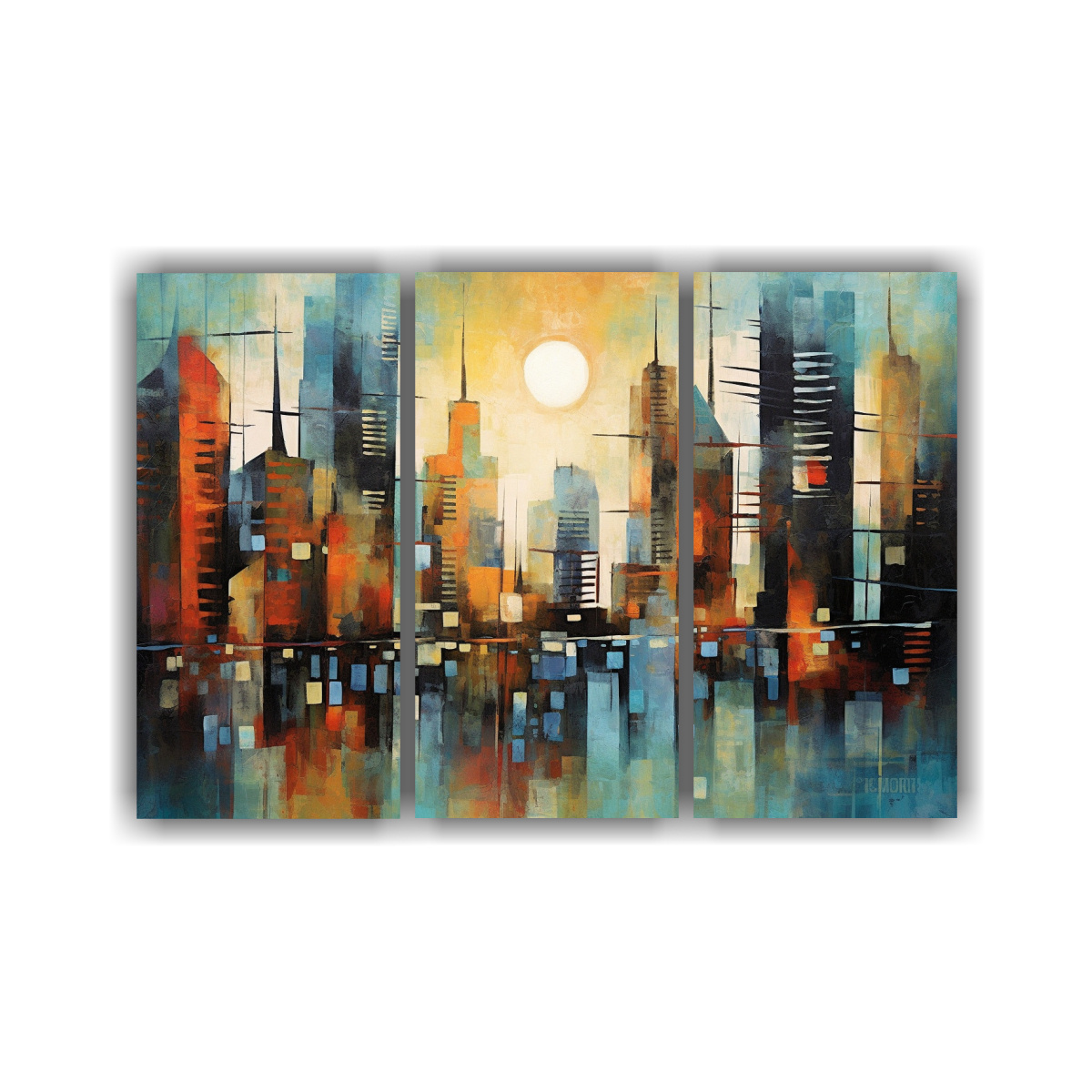 Pinturas Abstractas De La Ciudad En Estilos Mixtos Para Decorar.