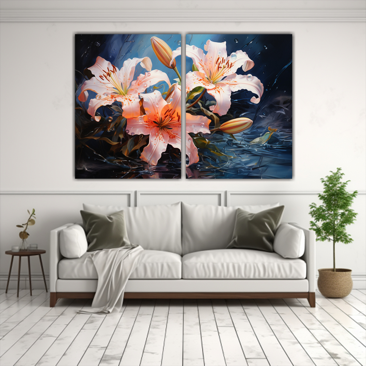 Pinturas Abstractas De Lirios En Turquesa Y Rosa Para Decoración De Pared