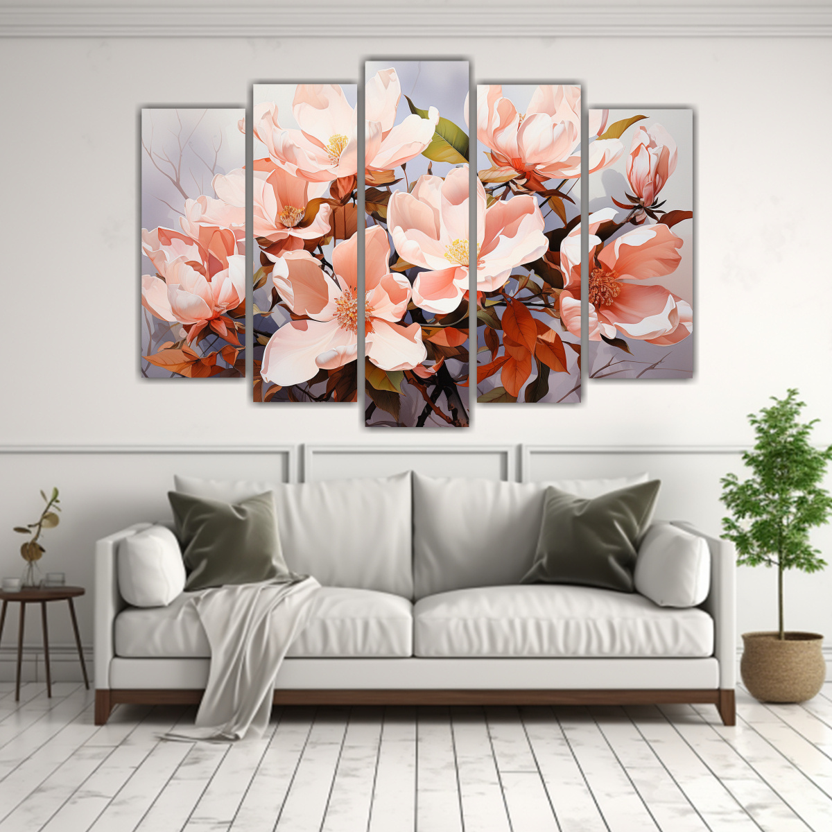Pinturas Abstractas De Magnolias En Colores Naranja Y Rosa