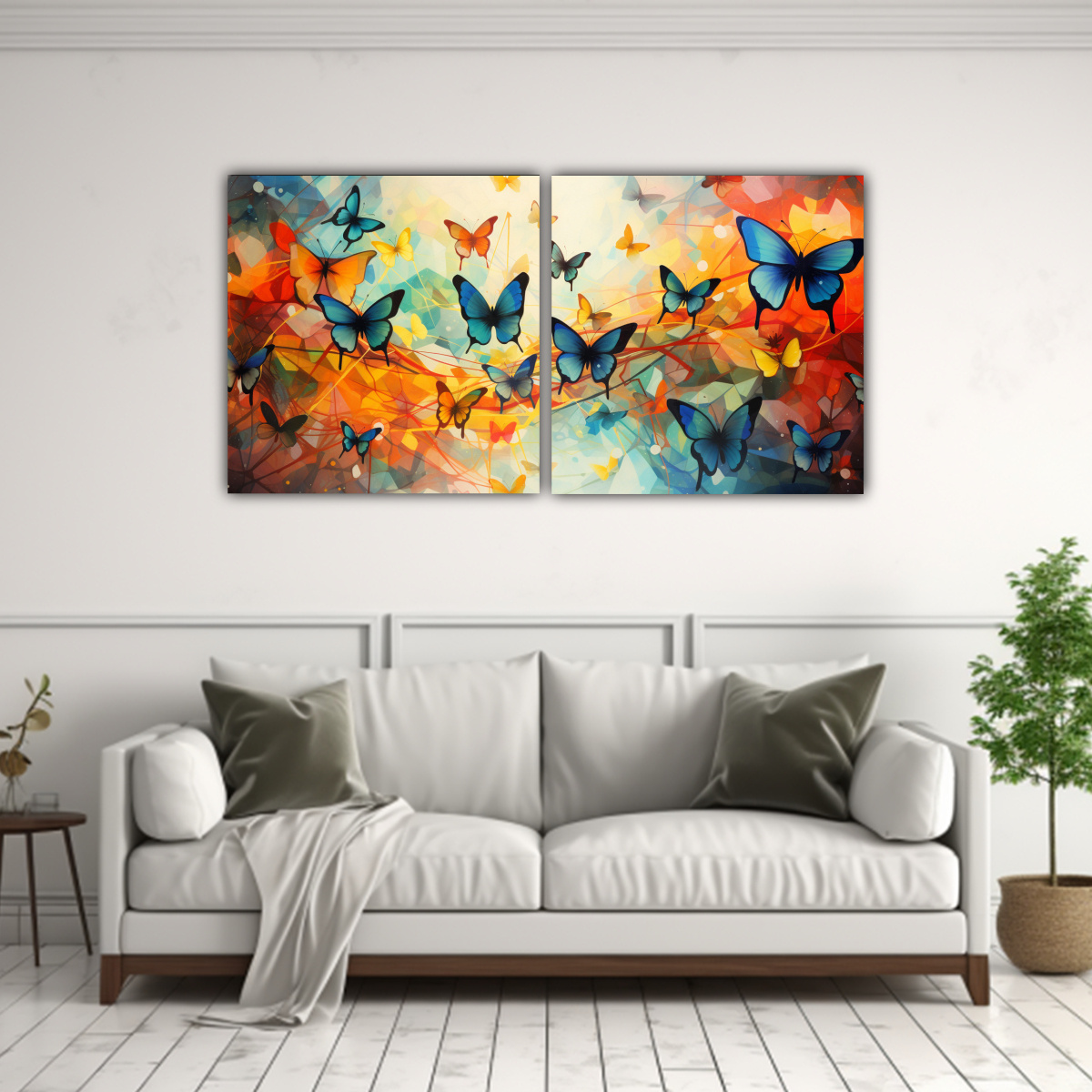 El cuadro ‘Pinturas abstractas de mariposas en estilo Pop Art’ es perfecto para agregar un toque de color y vida a cualquier sala de estar o dormitorio Combina a la perfección con muebles de tonos neutros como blanco o gris, creando un contraste llamativo y moderno Colócalo sobre un sofá o cama para crear un punto focal en la habitación También puedes combinarlo con otros cuadros de la misma temática o estilo para crear una galería de arte personalizada ¡Deja volar tu imaginación y crea un espacio único con nuestros cuadros decorativos!