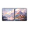 Pinturas Abstractas De Montañas Junto Al Lago Con Colores Del Arcoíris