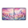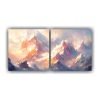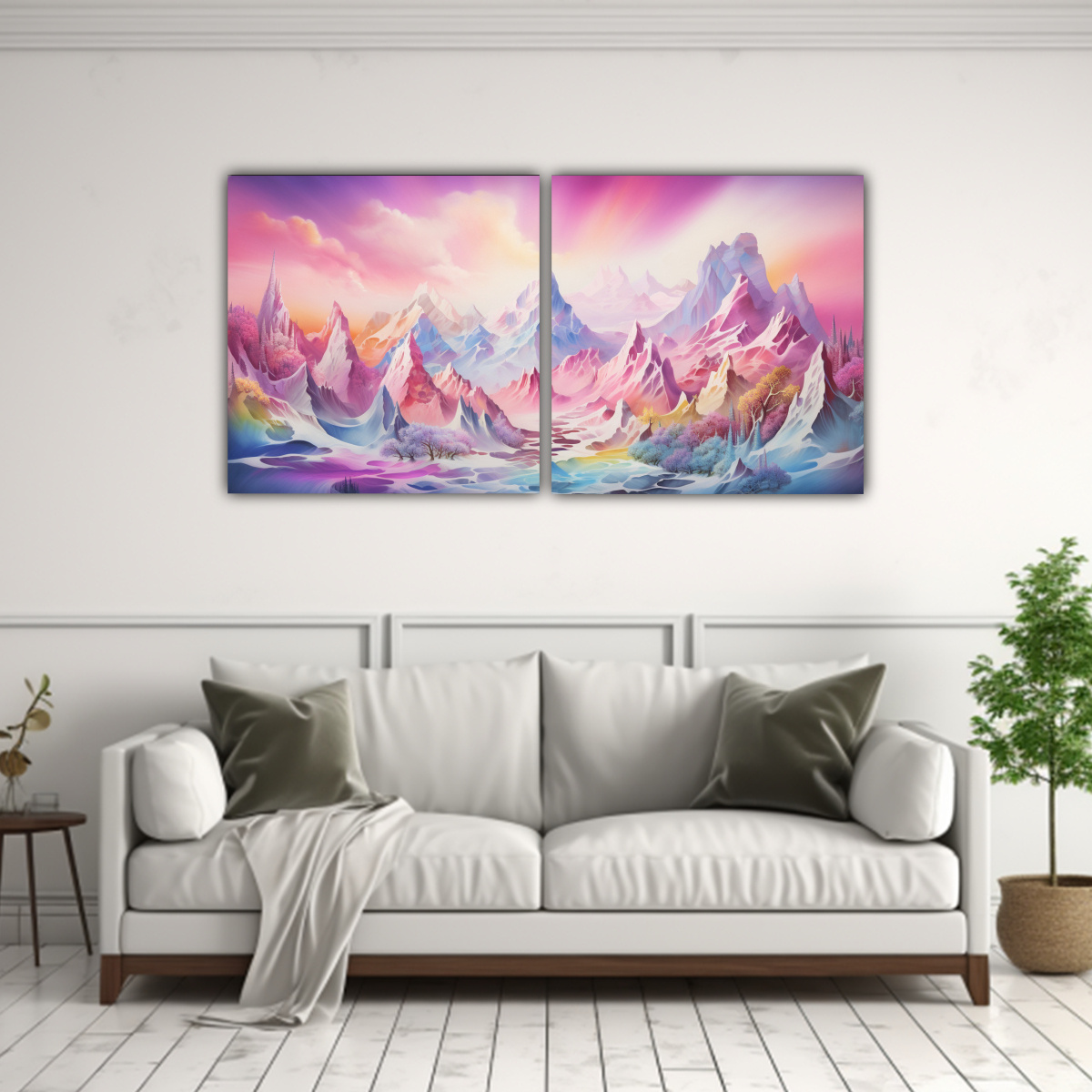 Pinturas Abstractas De Montañas Nevadas Con Arcoíris Y Colores Rosados En Lienzo.