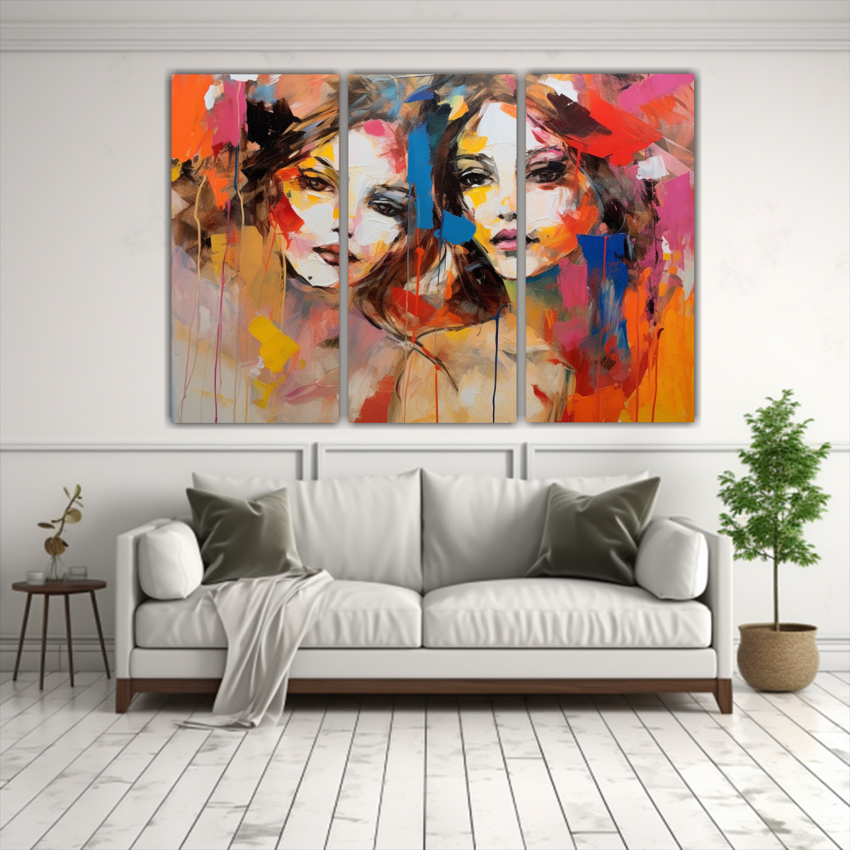 Este cuadro abstracto de mujeres felices en expresionismo abstracto sería ideal para colocar en el living o en la sala de estar, creando un ambiente alegre y moderno Combínalo con muebles en tonos neutros para que resalte y se convierta en el centro de atención de la habitación