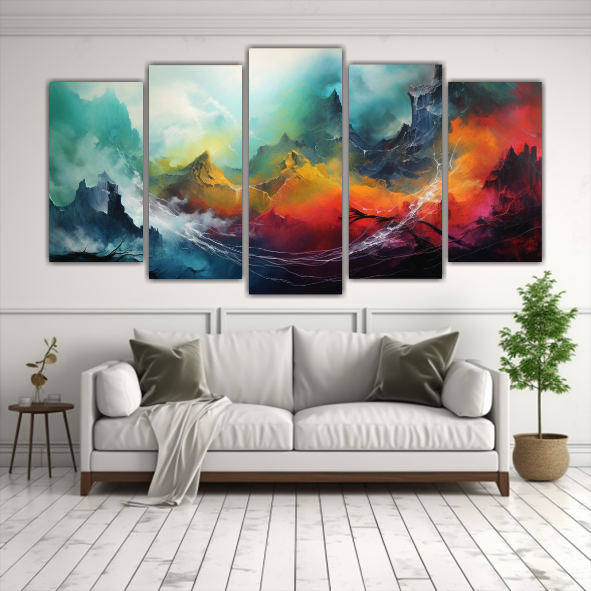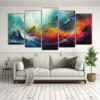 DecoCuadros presenta cinco artes de pared de alta calidad temática pintura abstracta paisajes en tonos turquesa, azul marino grisáceo, plateado, menta, carmesí y coral Estos cuadros decorativos impresos en tela de alta calidad con bastidores de madera son perfectos para agregar un toque de elegancia y modernidad a cualquier espacio Nuestros diseños exclusivos, junto con la mejor calidad y los precios más económicos del mercado, hacen de DecoCuadros la elección perfecta Ofrecemos entregas rápidas y gratuitas en Santiago y envíos a regiones express ¡Decora tu hogar con estilo con nuestros cuadros de paisajes abstractos!