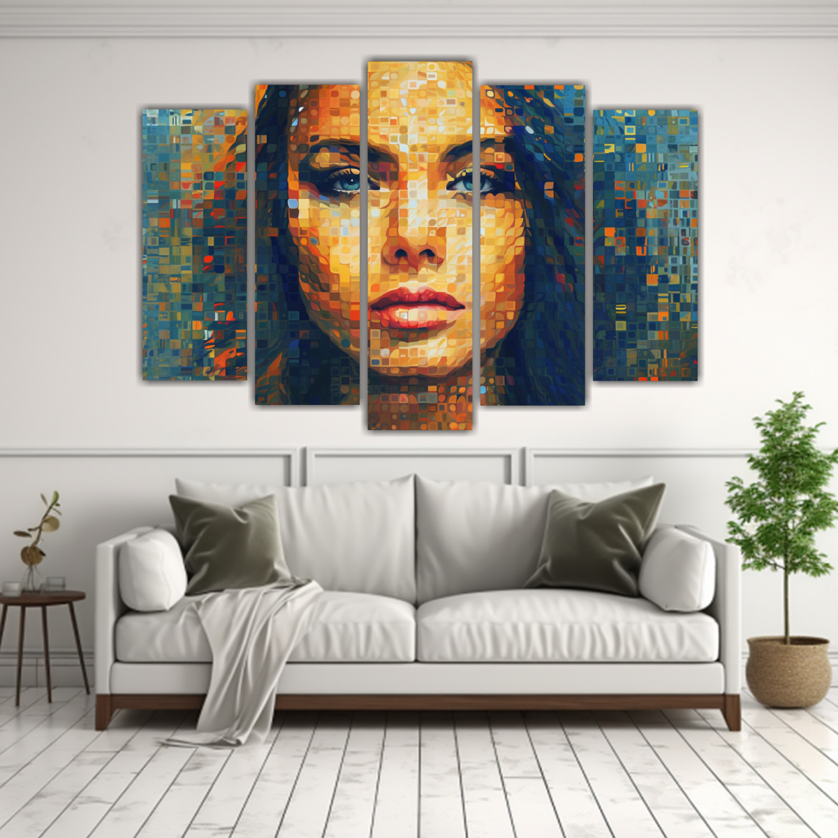 Coloca este set de cuadros en estilo pixelado en tu sala de estar para crear un impacto visual Combina los colores con cojines y accesorios decorativos en tonos neutros para resaltar la paleta cromática ¡Transforma tu espacio con estas obras de arte modernas!