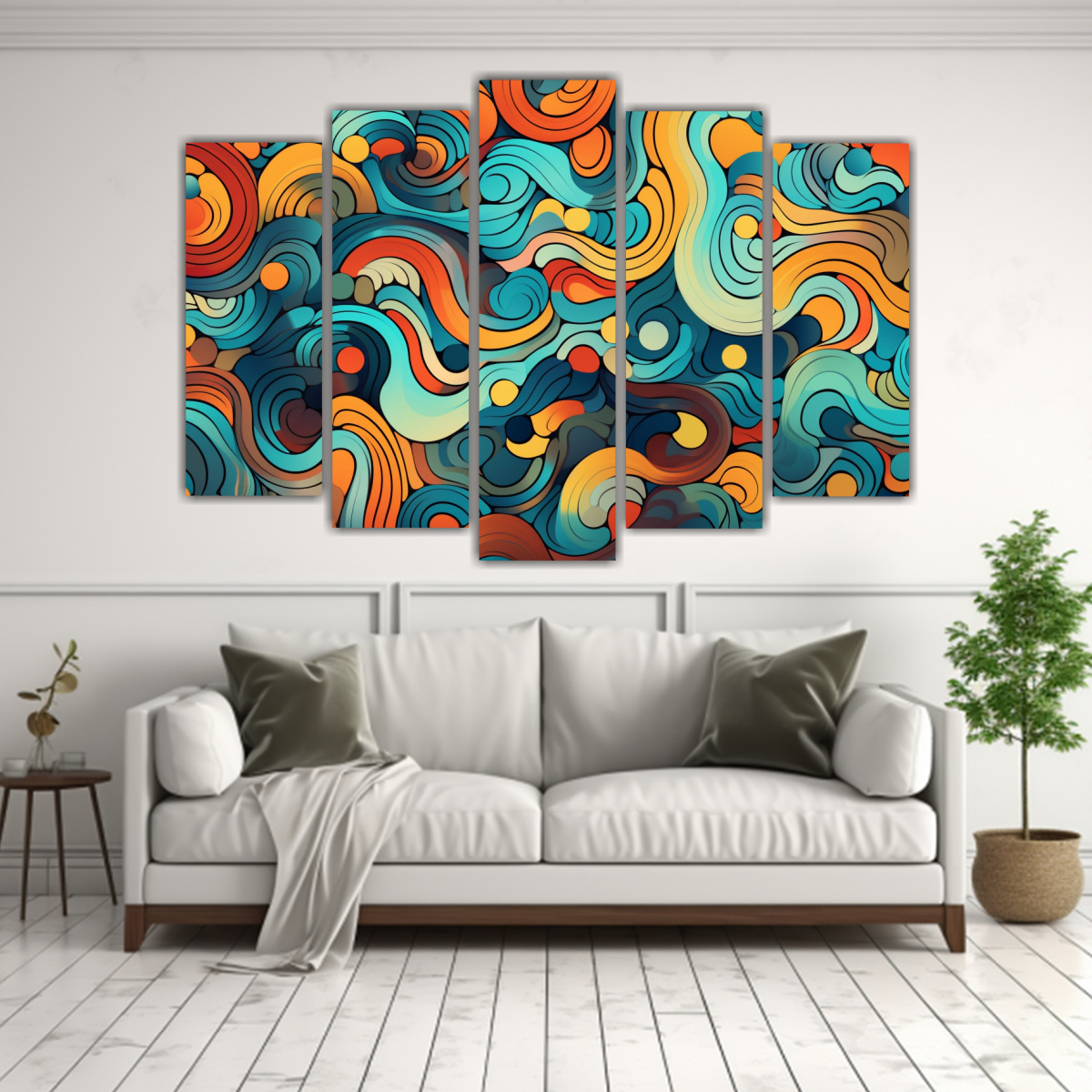 Renueva tu espacio con los Cinco Lienzos de Tela con patrones abstractos de intensidad Diseños exclusivos y entrega gratuita en Santiago ¡Decora con estilo y personalidad!