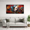 Este cuadro de pinturas abstractas de toros en bastidor es perfecto para decorar salas modernas Puedes colocarlo sobre un sofá negro o marrón oscuro para resaltar los tonos plateados, azul marino y carmesí de la pintura Complementa con cojines en colores turquesa y verde azulado para crear un ambiente armonioso y sofisticado ¡Será el centro de atención de tu sala y le dará un toque único a tu decoración!