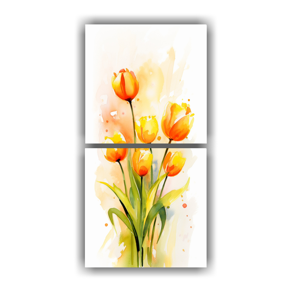 Decora tu comedor con elegancia con este set de 2 cuadros abstractos de tulipanes amarillos y naranjas Descubre diseños exclusivos y entrega rápida en Santiago y envíos express a regiones