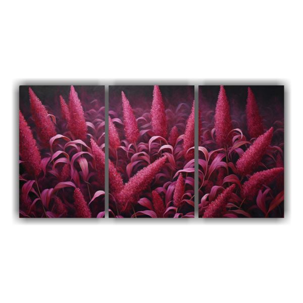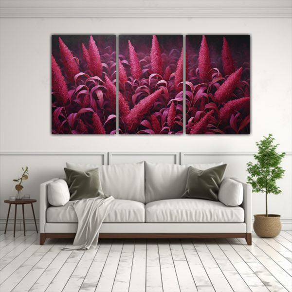 Este cuadro abstracto de amaranto se vería espectacular en un salón amplio y luminoso, colocado sobre un sofá blanco para resaltar sus vibrantes colores Complementa con cojines a juego para una decoración armoniosa