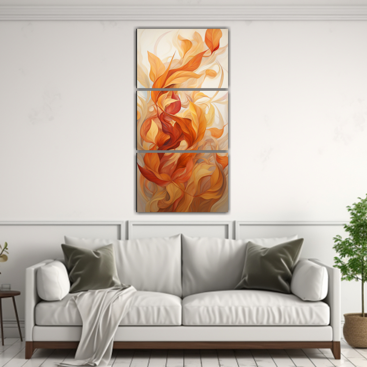Pinturas Abstractas Dinámicas De Hojas De Otoño En Set 3 Artes Tonos Interiores.