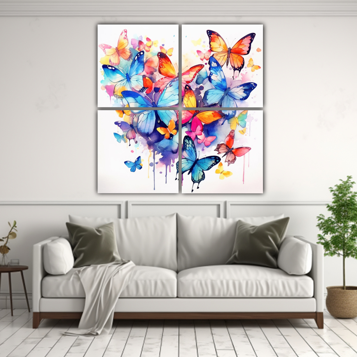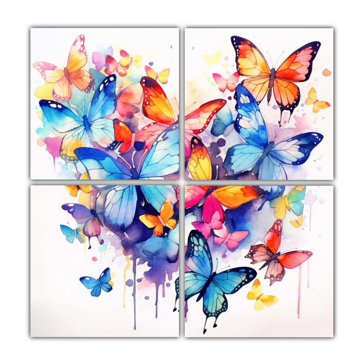 Este cuadro abstracto duradero con muchas mariposas de colores en acuarela es ideal para añadir un toque de color y alegría a cualquier habitación Puede colocarse en la sala de estar, el dormitorio o incluso en una oficina para crear un ambiente vibrante y estimulante Combínalo con muebles y accesorios en tonos neutros para resaltar aún más su belleza ¡Atrévete a darle vida a tus espacios con este increíble cuadro de DecoCuadros!