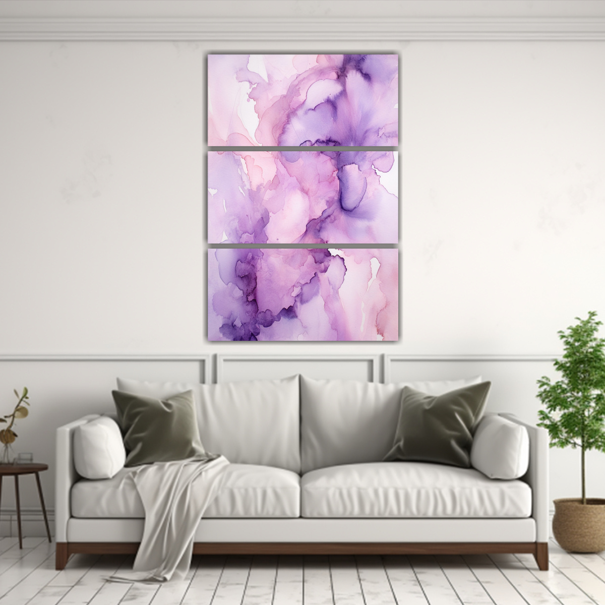 Decora tus espacios con cuadros abstractos duraderos Tres Canvas en un hermoso fondo de acuarela lila pálido Disfruta de la mejor calidad y precios económicos en DecoCuadros