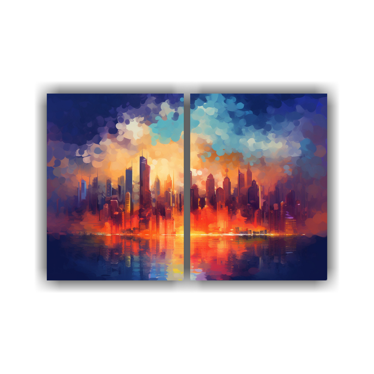 Pinturas Abstractas En Bastidor: Ciudad Dinámica Al Anochecer