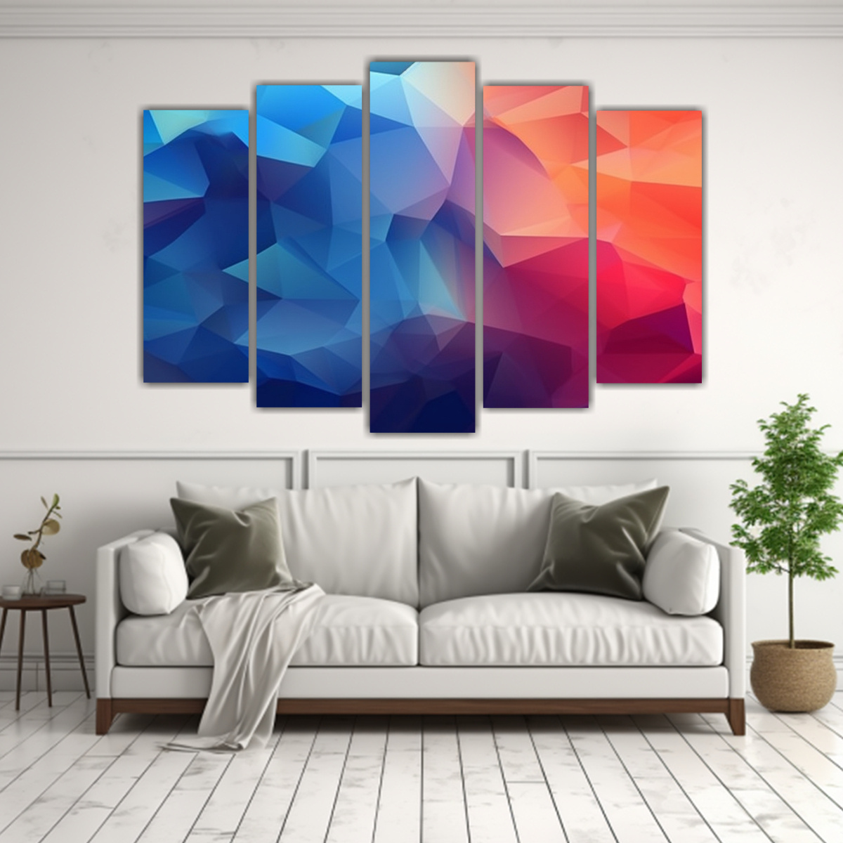 Pinturas Abstractas En Bastidor: Diseño Creativo Con Cinco Telas En Forma De Polígonos