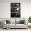 Este cuadro es perfecto para darle un toque moderno y sofisticado a cualquier ambiente Recomendamos colocarlo en un salón de estar o en un dormitorio, ya sea solo o en conjunto con otros cuadros abstractos en blanco y negro ¡La combinación de colores plateado, gris, negro y azul marino grisáceo le dará un estilo único a tu espacio!
