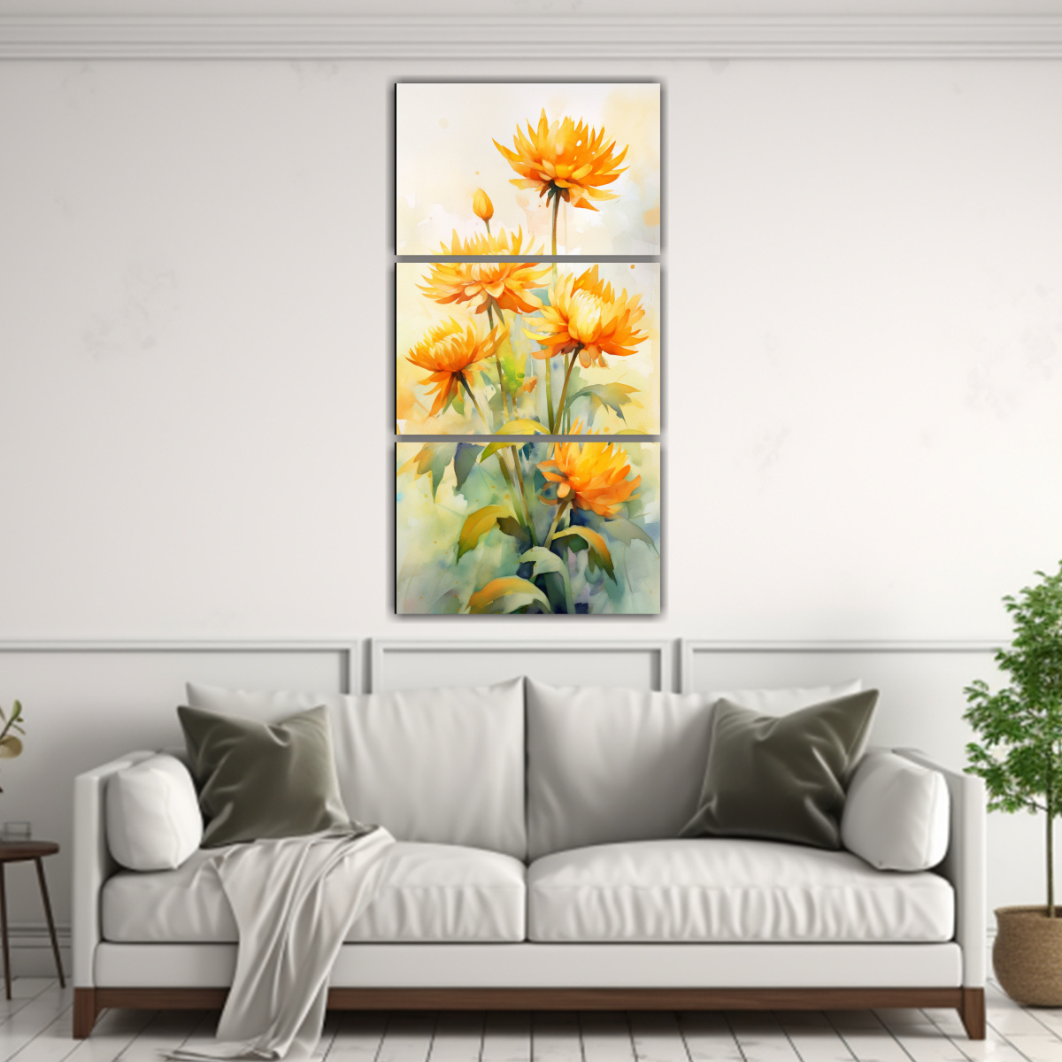 Este tríptico moderno en colores naranja de girasoles de Jerusalén quedará espectacular en tu sala de estar sobre un sofá blanco, creando un contraste elegante y llenando el espacio de energía positiva ¡Combina con cojines en tonos cálidos para un ambiente acogedor!
