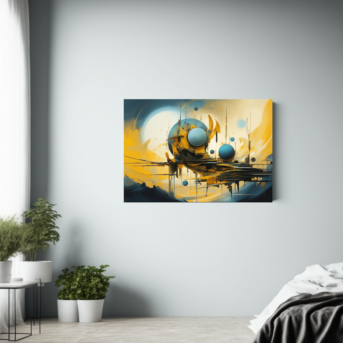 Este cuadro abstracto en dorado es ideal para colocar en la sala de estar sobre un sofá de color neutro, creando un contraste elegante y moderno Combínalo con cojines en tonos mostaza y turquesa para un look sofisticado y actual