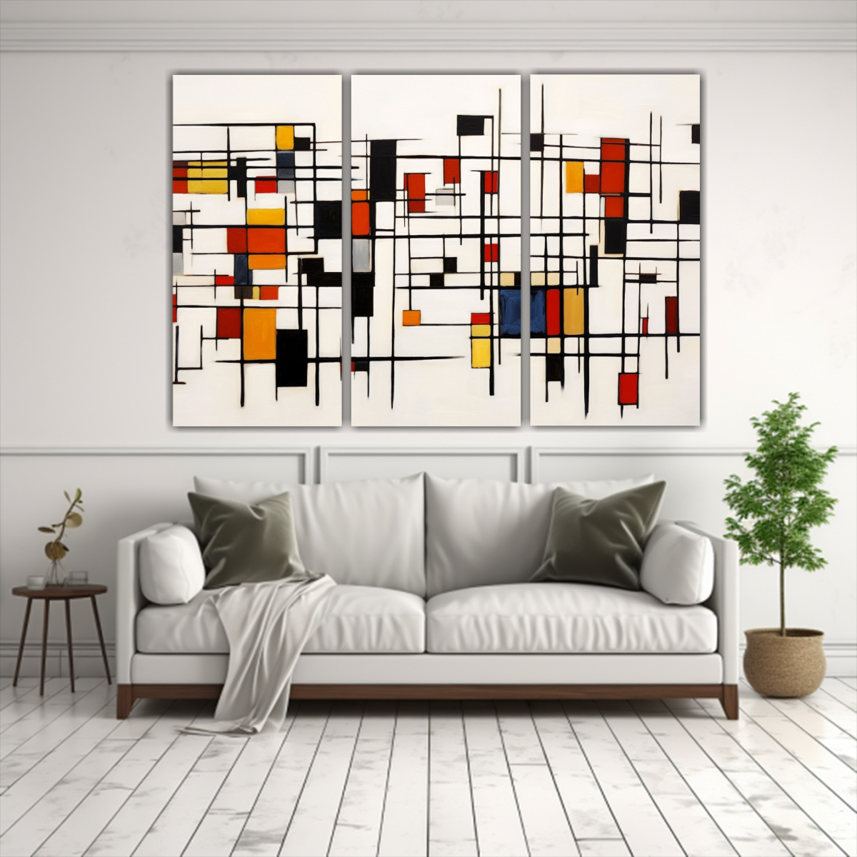 Coloca este set de cuadros abstractos en tu sala de estar sobre un sofá blanco para crear un contraste elegante y moderno Combina con cojines en tonos neutros para resaltar la profundidad de las líneas negras