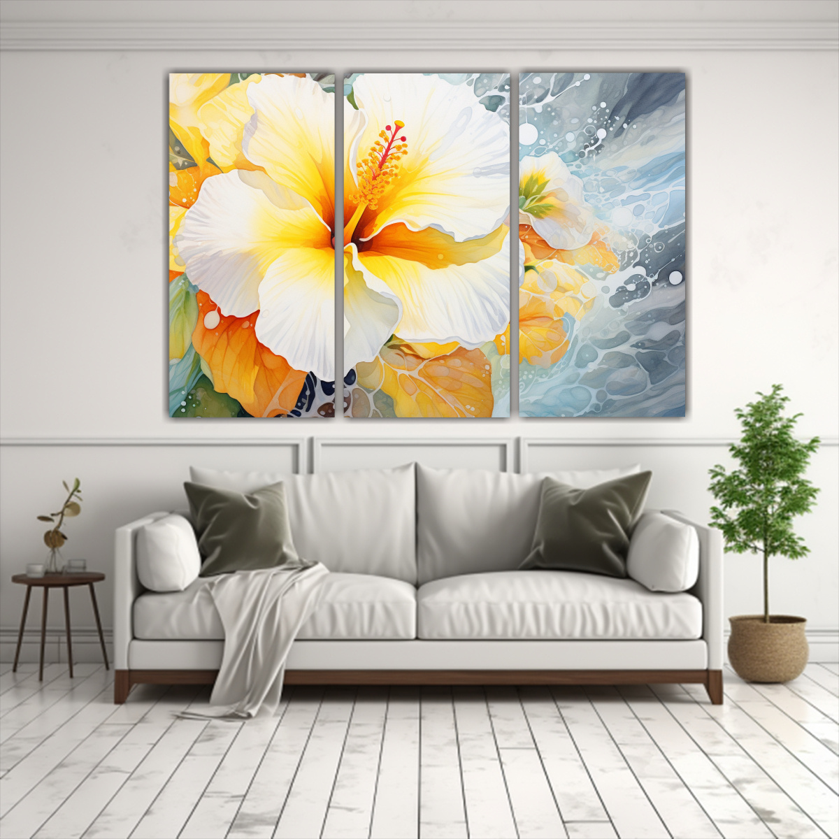Los colores vibrantes del hibiscos amarillos y blancos te transportarán a un ambiente de tranquilidad y sofisticación Decora tu sala, comedor o dormitorio con este cuadro único ¡Envíos rápidos y gratuitos en Santiago, y a regiones express!