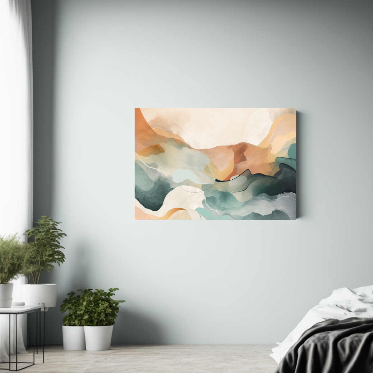 Este cuadro abstracto en lienzo estilo galería con colores tenues y composición única es ideal para decorar salas de estar modernas o espacios de trabajo creativos Combínalo con muebles en tonos neutros y detalles en coral o turquesa para lograr un ambiente armonioso y vanguardista