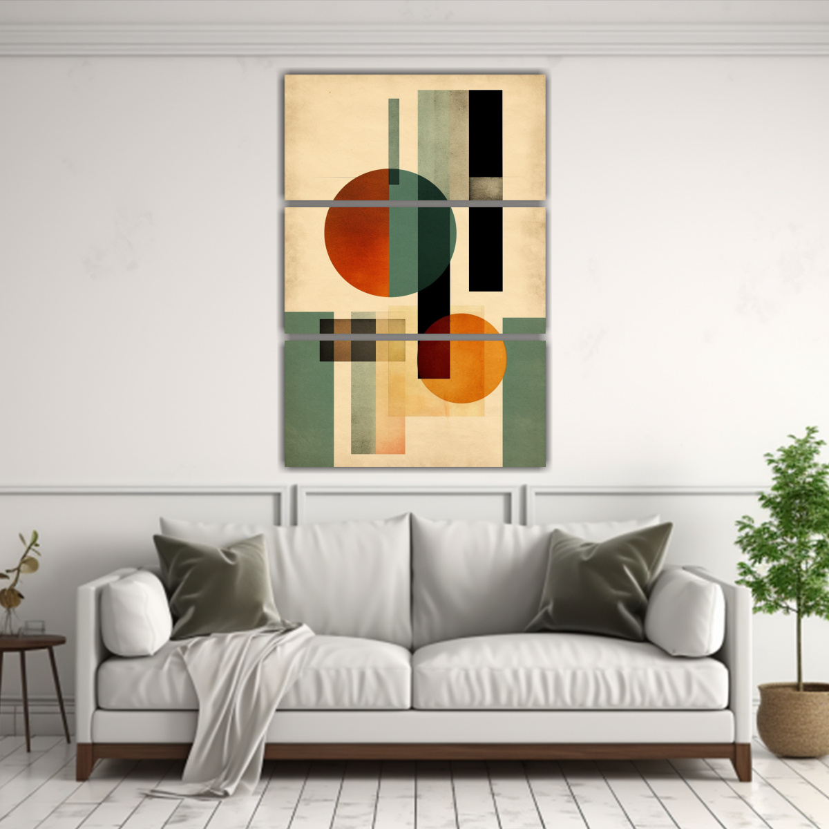 DecoCuadros: Set de 3 Canvas Abstracto con Formas Simples en Fondo Verde