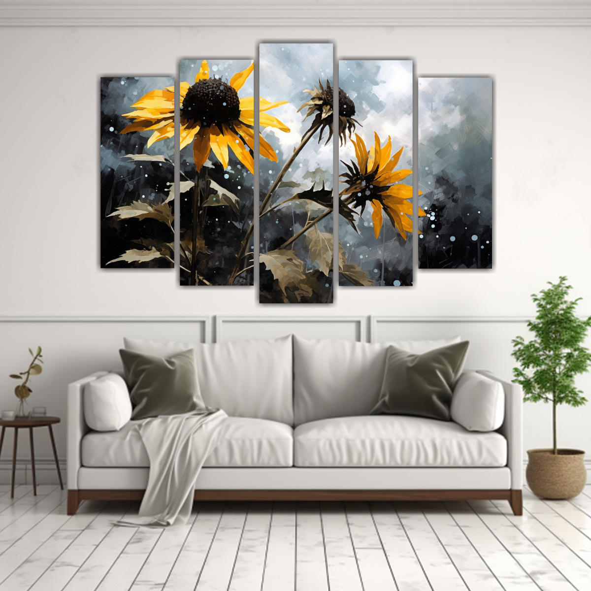 Decora tus espacios con este exclusivo diseño de cuadro abstracto que combina la elegancia del negro con las vibrantes flores de alcachofa de Jerusalén Envíos rápidos y gratuitos en Santiago, ¡adquiere el tuyo ya!