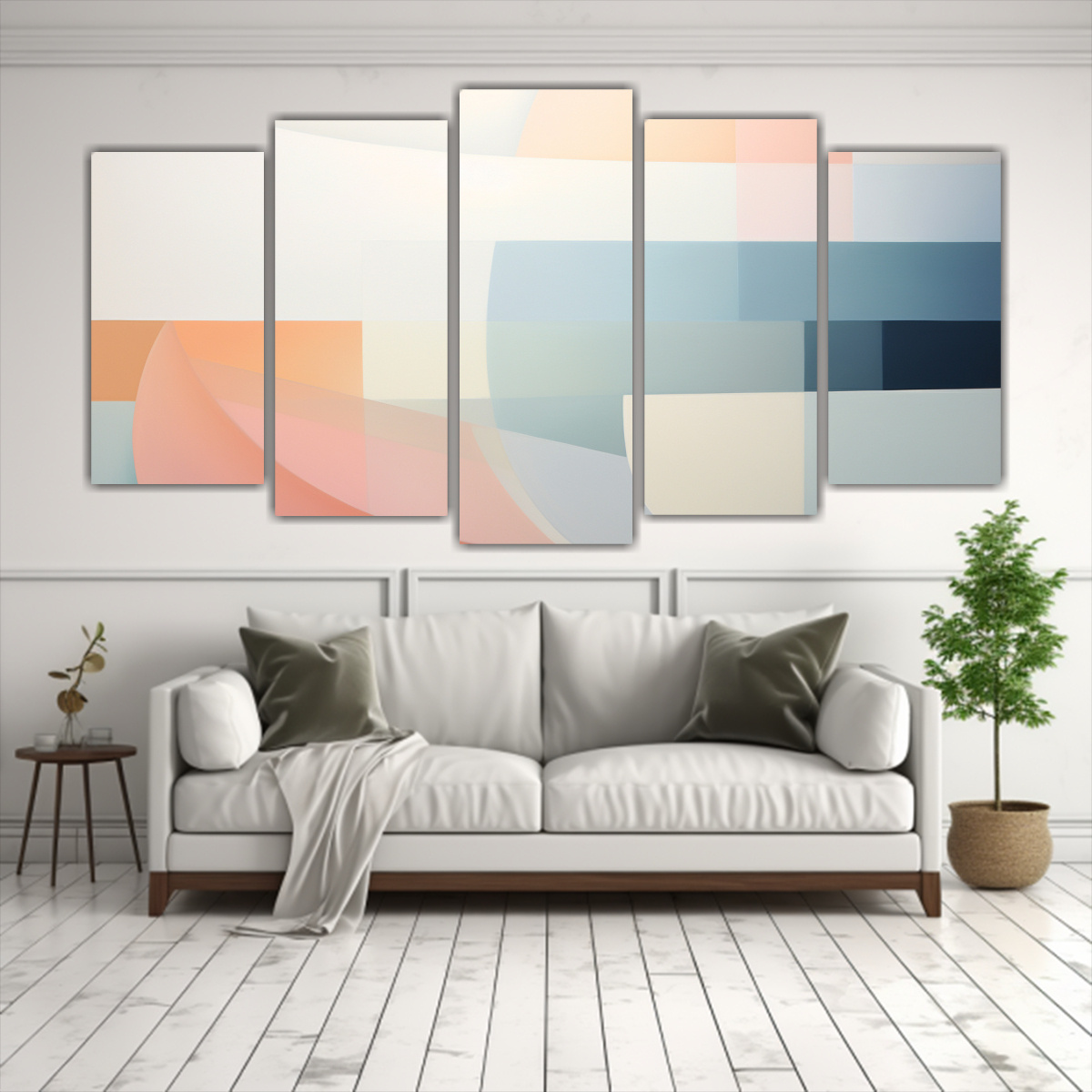 Este cuadro minimalista en tonos pastel sería perfecto para decorar una sala de estar o dormitorio con una paleta de colores suaves Puedes colocarlo sobre un sofá o cama para crear un punto focal en la habitación Combínalo con cojines y otros elementos decorativos en tonos similares para completar la armonía del espacio