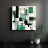 Pinturas Abstractas En Verde, Negro Y Blanco Sobre Fondo Geométrico