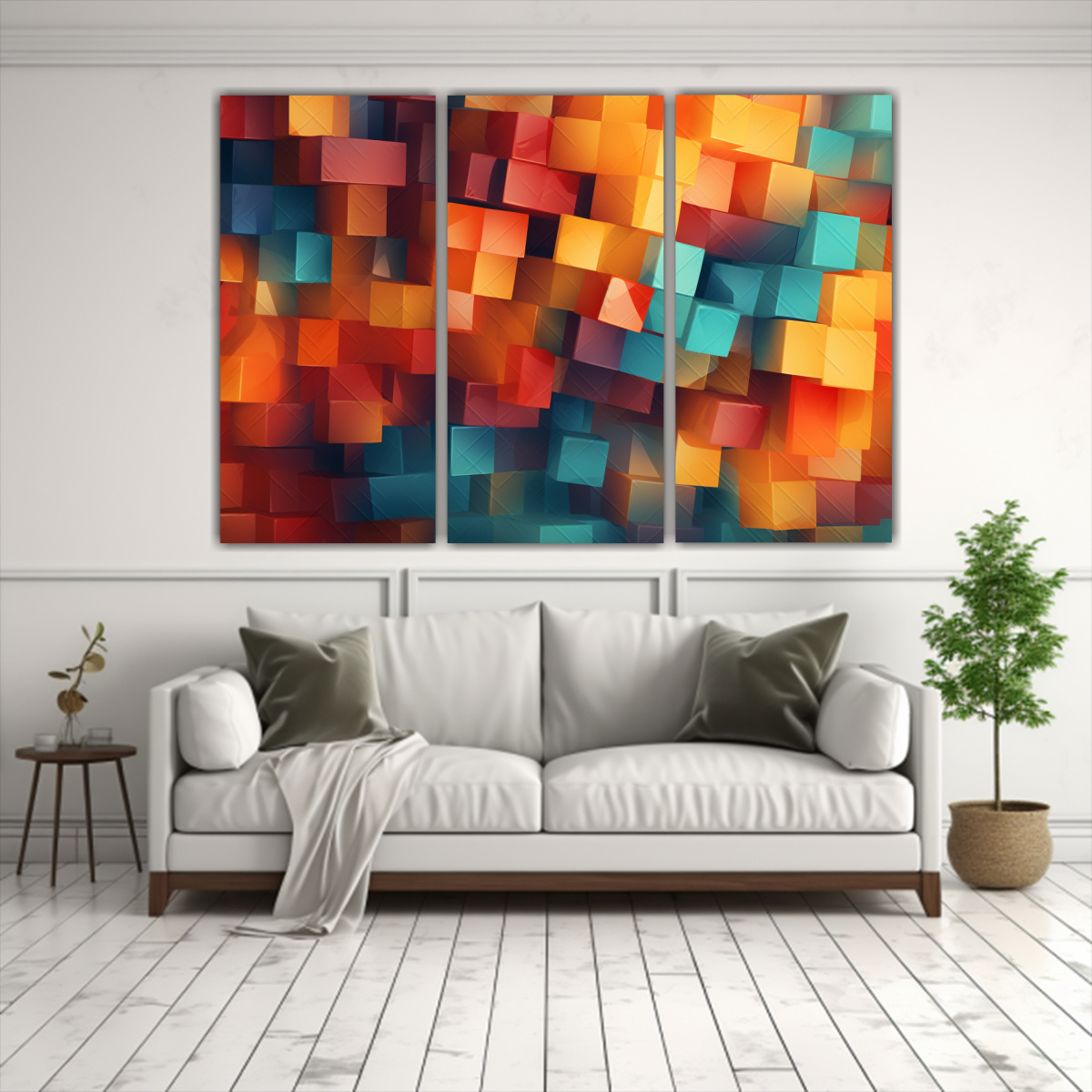 Este cuadro de tres fondos en tonos plateado, azul marino grisaceo y más, es ideal para decorar salas de estar o dormitorios con estilo contemporáneo Colócalo sobre un sofá gris claro para resaltar los colores y generar un punto focal en la habitación ¡Atrévete a crear un ambiente único!