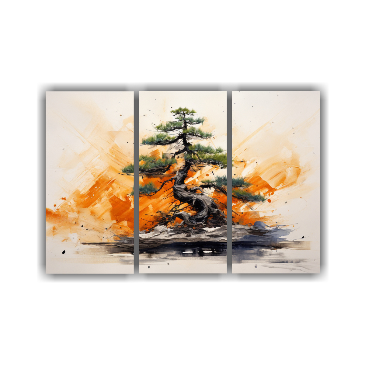 Pinturas Abstractas Espectaculares De Un árbol Bonsái De Pino En Colores Naranja Y Negro