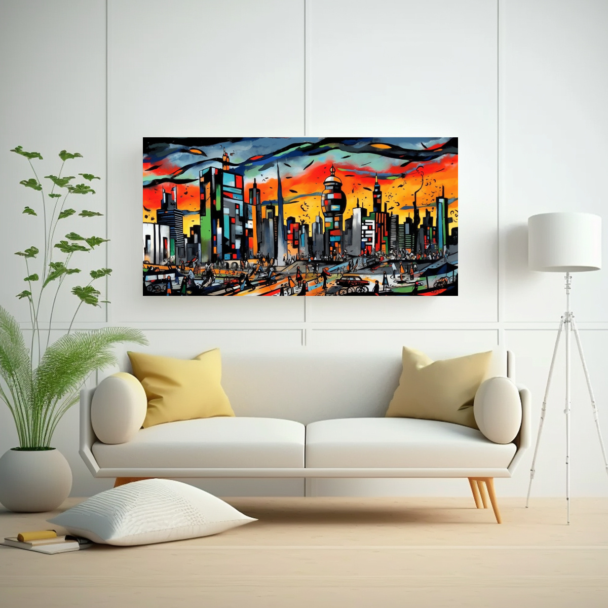Descubre en DecoCuadros el cuadro abstracto actual con skyline de Delhi, India, en una vibrante combinación de colores Calidad premium, precios accesibles y envío rápido y gratuito en Santiago ¡Renueva tu espacio con estilo!