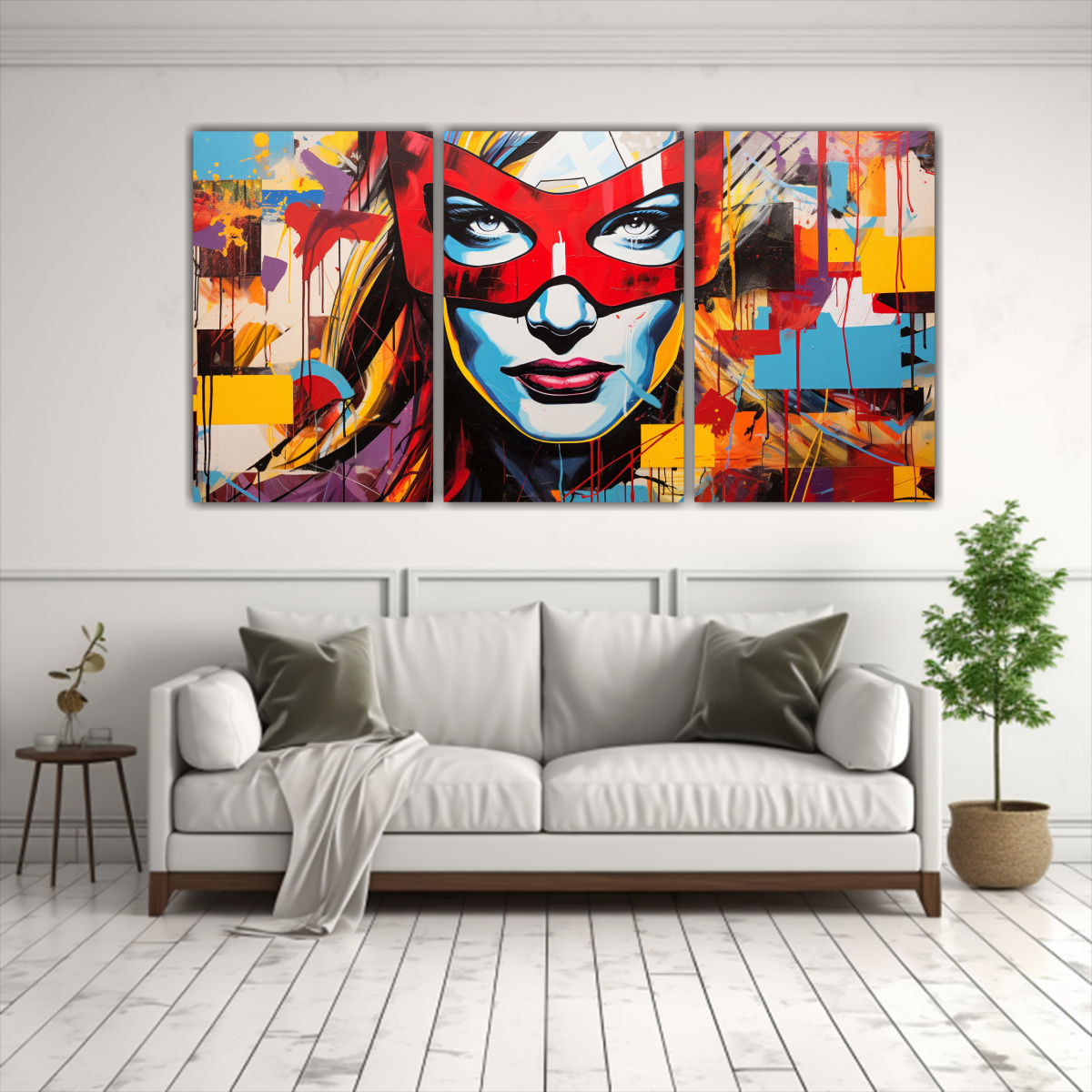 Pinturas Abstractas Fusionadas De Pop Art Y Cómic Vibrante En Tres Bastidores Modernos Para Decoración De Comedor
