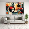 Renueva tu espacio con la exclusividad de las pinturas abstractas geométricas en estilo fantástico Los tonos de Negro, Carmesí, Coral y Azul Marino Grisáceo crean una atmósfera única Envíos gratuitos y rápidos en Santiago, ¡adquiere ya el tuyo!