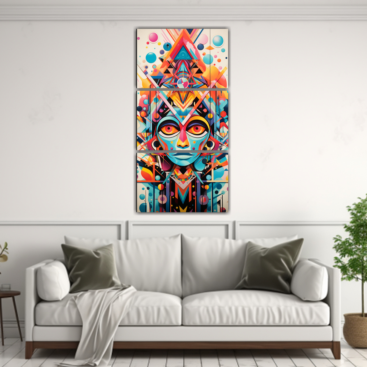 Este cuadro abstracto geométrico de Tema Alegría quedará perfecto en tu sala de estar sobre un sofá de color neutro, creando un contraste elegante y moderno Combínalo con cojines en tonos similares para lograr una armonía visual única en tu hogar
