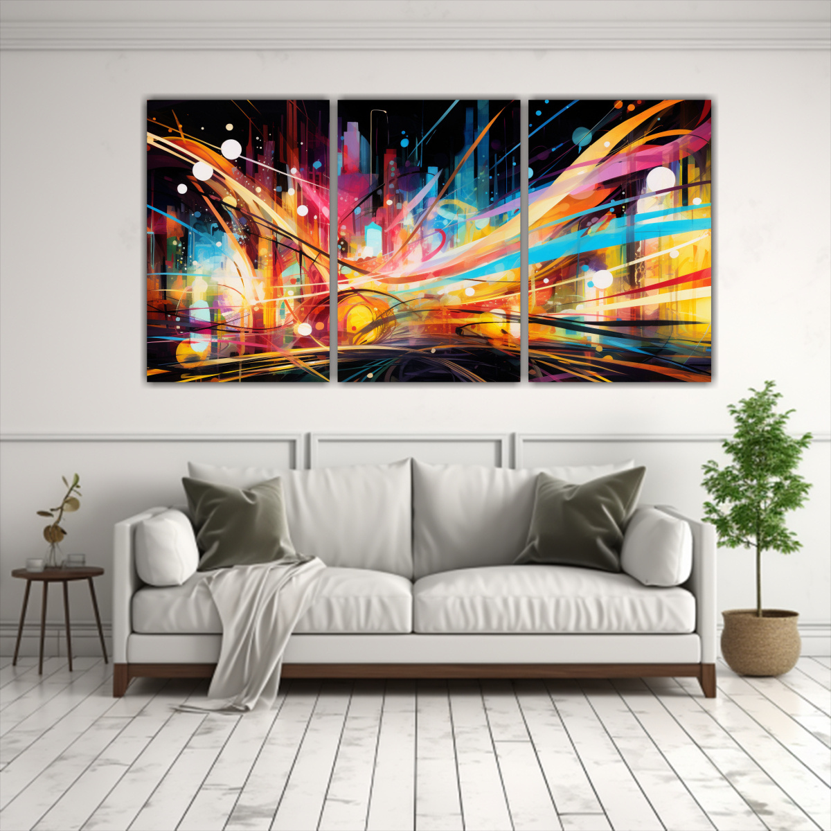 Pinturas Abstractas Habitación Con Patrones Giratorios Vivos Y Eléctricos