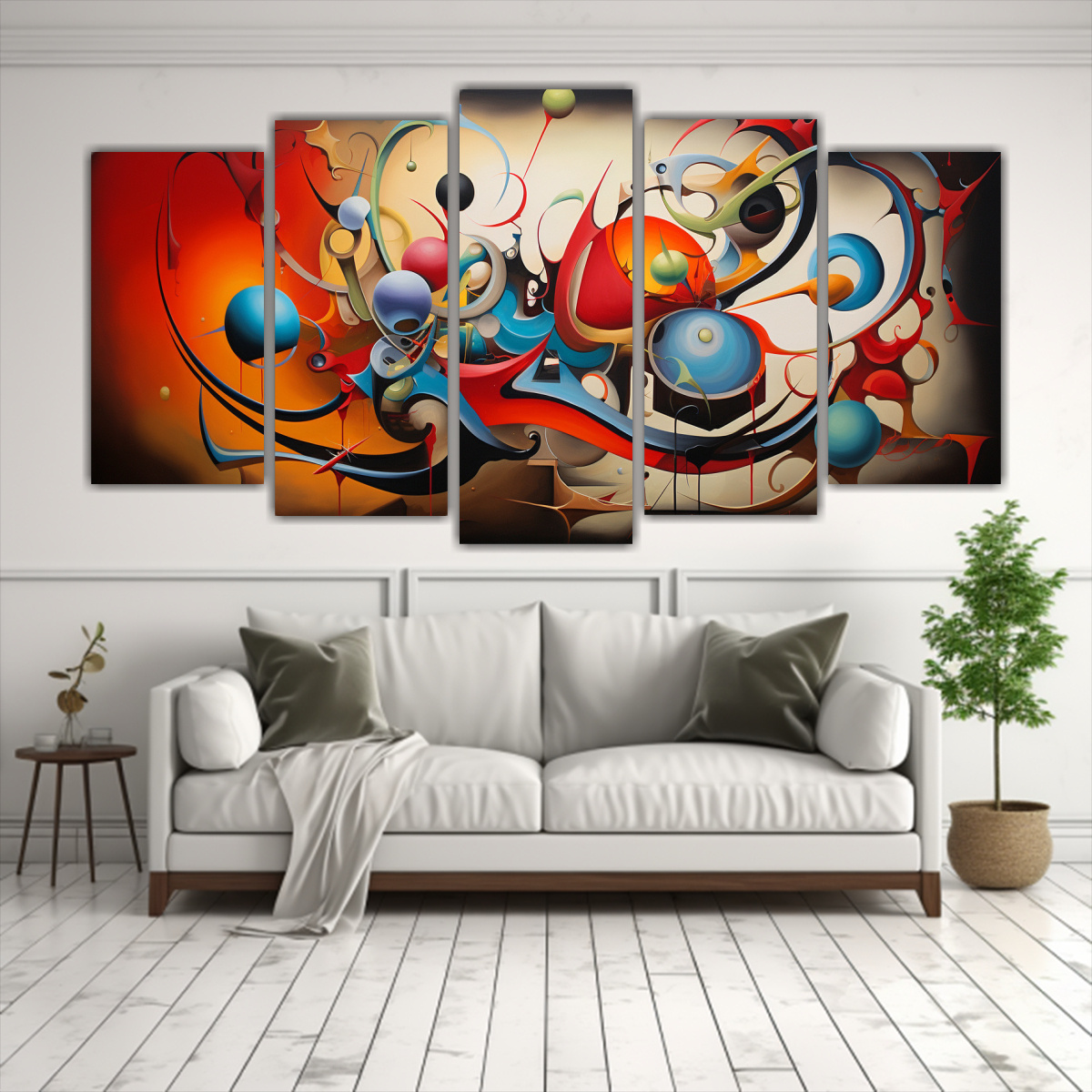 Este Set 5 Artes Horizontal Época será el complemento perfecto para decorar tu sala de estar Colócalo sobre el sofá principal para crear un punto focal en la habitación Combina los tonos gris, plateado, carmesí, negro y rojo con cojines y accesorios en colores neutros para lograr un contraste llamativo y elegante ¡Dale vida a tus paredes con este exclusivo conjunto de cuadros!