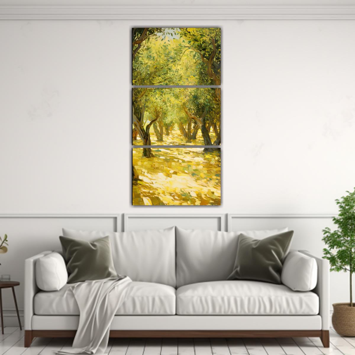 Coloca este cuadro en la sala de estar para crear un ambiente cálido y sofisticado Combínalo con muebles de tonos neutros para resaltar su paleta de colores y deja que la luz natural resalte los detalles de la representación del olivar ¡Una manera perfecta de dar vida a tu espacio!