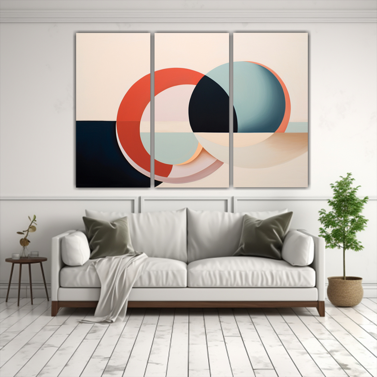 Pinturas Abstractas Minimalistas De Figuras En Tres Cuadros