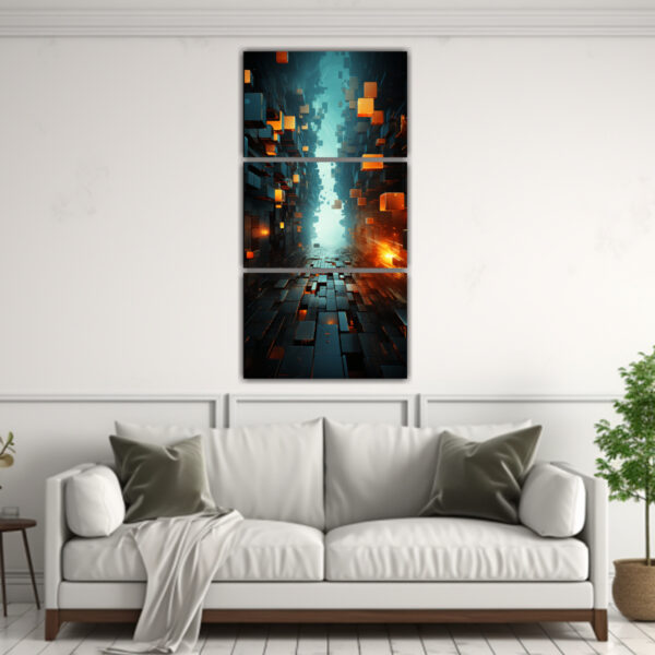 Estas pinturas abstractas modernas en estilo futurista son ideales para decorar una sala de estar contemporánea Puedes colocar el set de 3 composiciones en una pared de acento o distribuirlos en diferentes áreas del espacio para crear un efecto visual impactante Combínalos con muebles en tonos neutros para resaltar los colores vibrantes de los cuadros y añade algunos elementos decorativos en tonos metálicos para completar el estilo futurista ¡La colección de DecoCuadros te ayudará a crear un ambiente único y sofisticado en tu hogar!