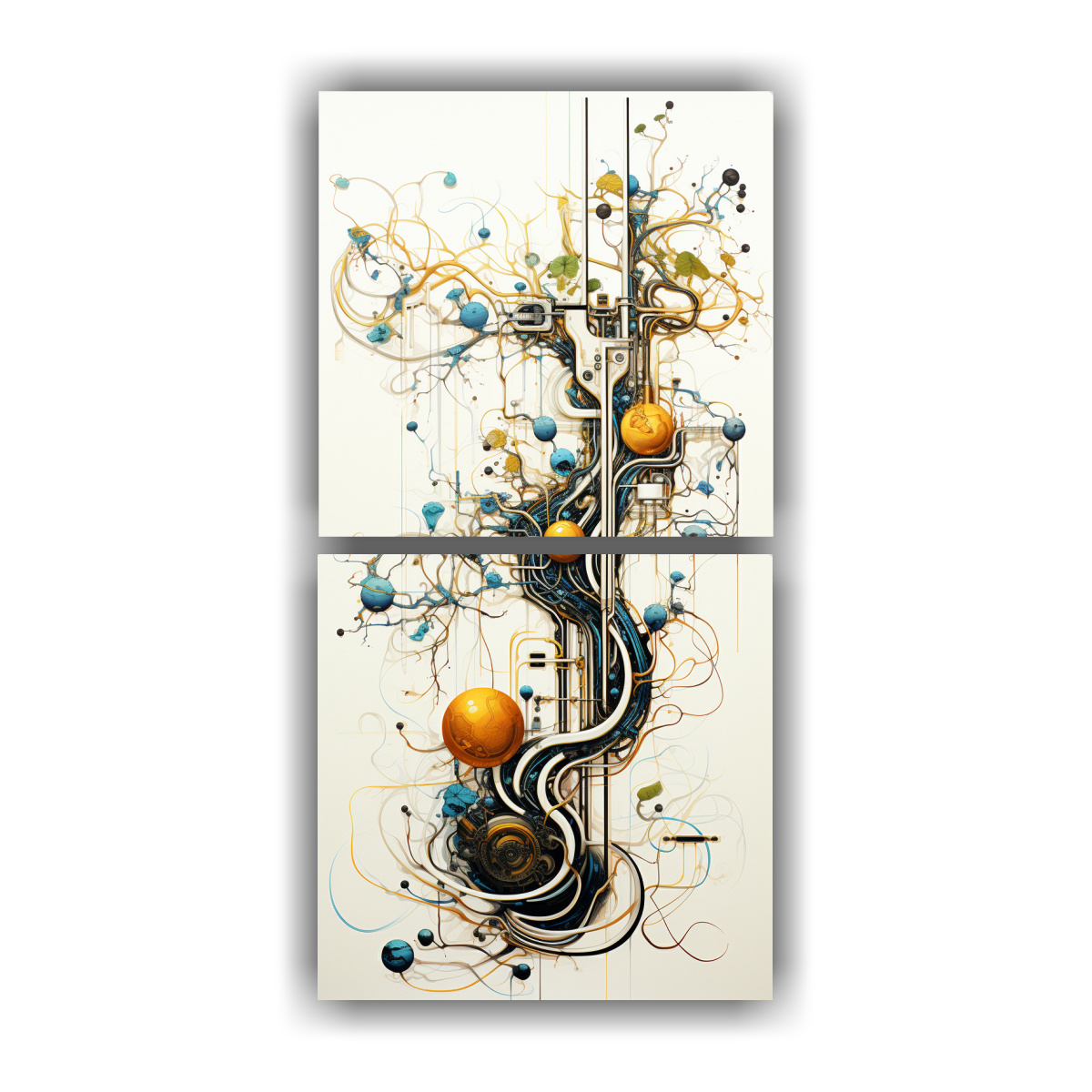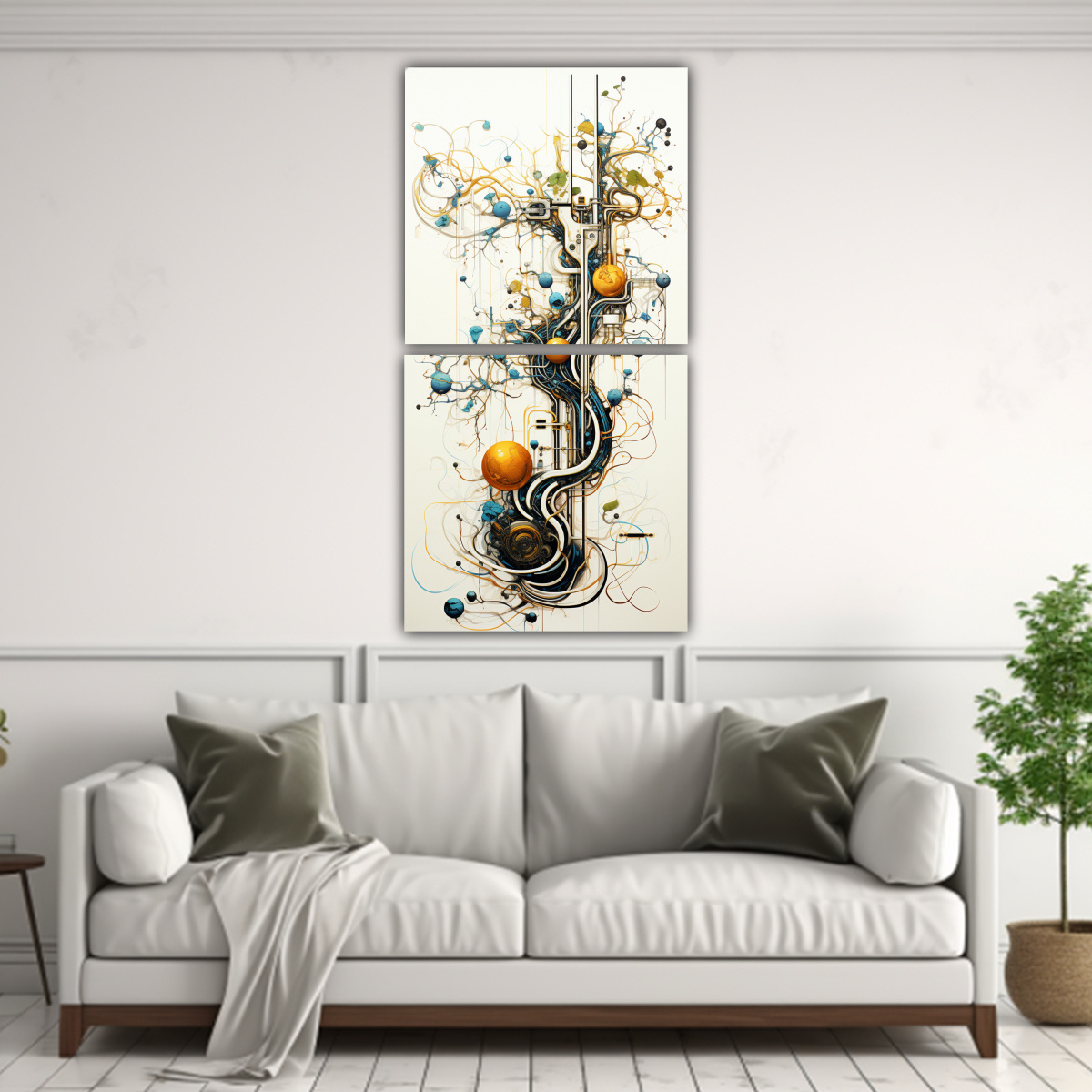 Pinturas Abstractas Modernas De Fusion De Tecnología Y Naturaleza En Bastidor