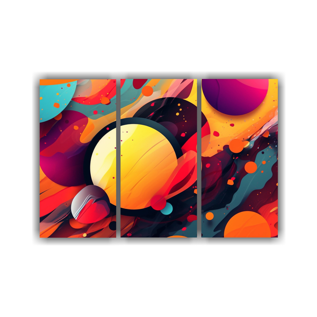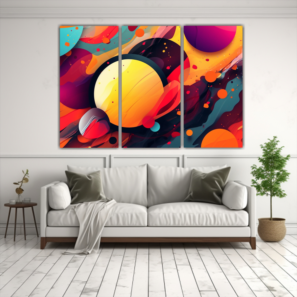 Este Set de 3 cuadros abstractos modernos en lienzo se verá espectacular en tu sala de estar Puedes colocarlos juntos para crear un impacto visual o distribuirlos en diferentes paredes de la habitación para un estilo más dinámico Combínalos con muebles en tonos neutros para resaltar su diseño colorido y agregar un toque de modernidad a tu hogar