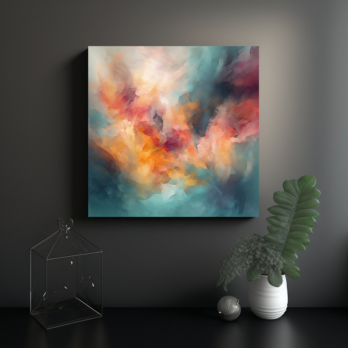 Para realzar la belleza de este cuadro abstracto multicolor, te recomendamos colocarlo en una pared blanca o gris claro, destacando así cada tonalidad y creando un punto focal en la habitación Combínalo con muebles en tonos neutros para un ambiente equilibrado y sofisticado