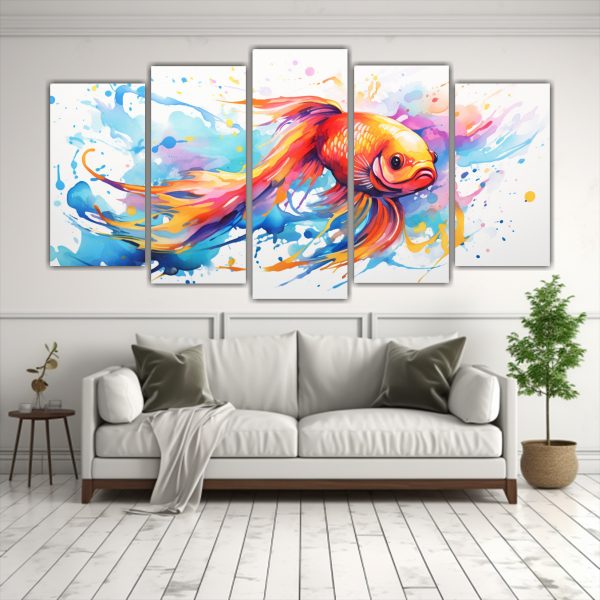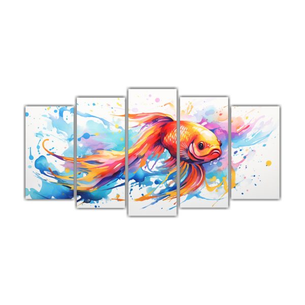 Pinturas Abstractas Multicolor De Un Pez Dorado En Colores Arcoíris Y Naranja