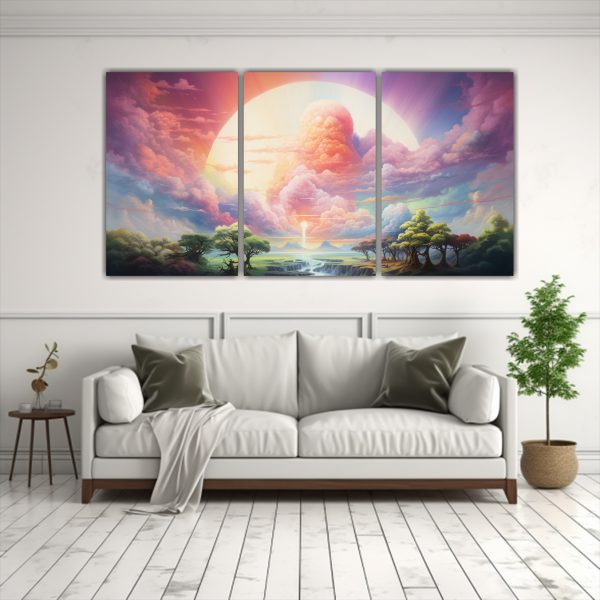 Este cuadro abstracto paisaje con arcoíris y colores pastel se vería increíble en el salón de tu casa, creando un punto focal colorido y relajante Combínalo con muebles neutros para resaltar su belleza y añadir un toque moderno a tu espacio