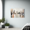 Para destacar el cuadro paisaje neutro minimalista, te recomendamos colocarlo en una pared blanca para resaltar la combinación de colores Puedes acompañarlo con muebles en tonos neutros y detalles en coral para crear un ambiente armonioso y sofisticado